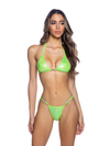 Steal the spotlight in the Cosmic Crush outfit— a dreamy three-piece combo that’s made to shimmer under the lights. This set includes a sparkle-kissed triangle bikini top with heart hardware, a matching shimmer mini skirt with peekaboo side straps, and coordinating bottoms for the full rave fantasy.