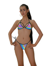 Complete with triangle cups, strappy detailing, and adjustable side-tie bottoms for the perfect fit. Get ready to beam up the spotlight.